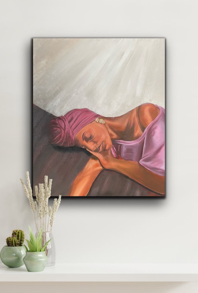 A woman draped in quiet surrender, her body softened by the weight of release. She has stepped away from the demands of the world and returned to herself.